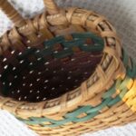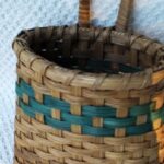 This wonderful basket can be hung on a door with silk or dried flowers. On a peg to hold mail, or more flowers. Use in the bathroom to hold combs and brushes. Size 7″ x 5″ x 7 1/4″ tall. Teal reed has been woven into the sides on this basket.